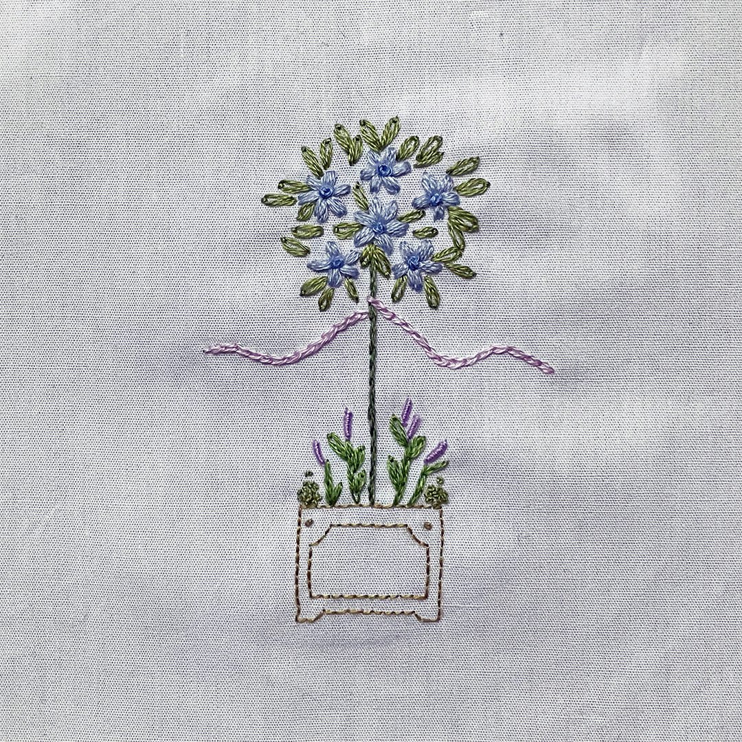 The weather is warming up here, and pastel blossoms and flowers are beginning to peek out—tempting me with the promise of lovely, longer days. I chose this pattern because I adore the timeless and manicured look of a topiary garden. It is based on a pattern from a 1907 embroidery book A Treatise on Embroidery; with Twenty Color Illustrations from Original Models (M. Heminway & Sons Silk Co., 1907).