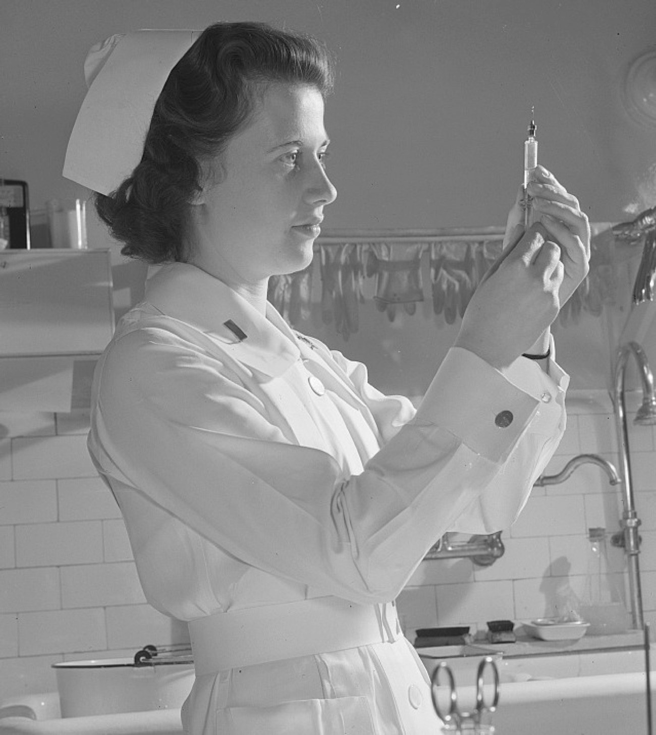 Lieutenant Frances Bullock of the Army Medical Center in Washington, D.C., 1943, in crisp whites. Photograph by Ann Rosener, courtesy of the Library of Congress Prints and Photographs Division