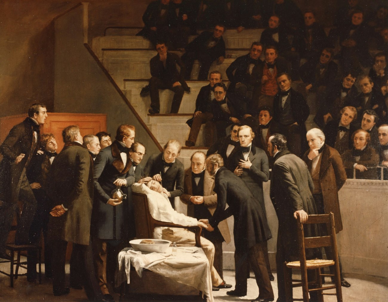 Doctors perform an operation under ether sedation,circa 1883, Massachusetts General
