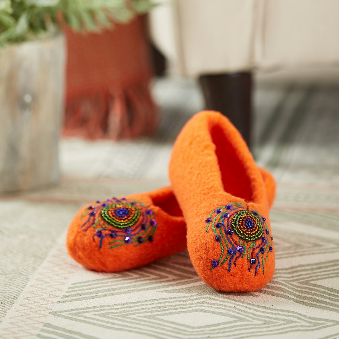A cozy treat: Eileen Lee’s Peacock Slippers to Knit, Felt and Embroider
