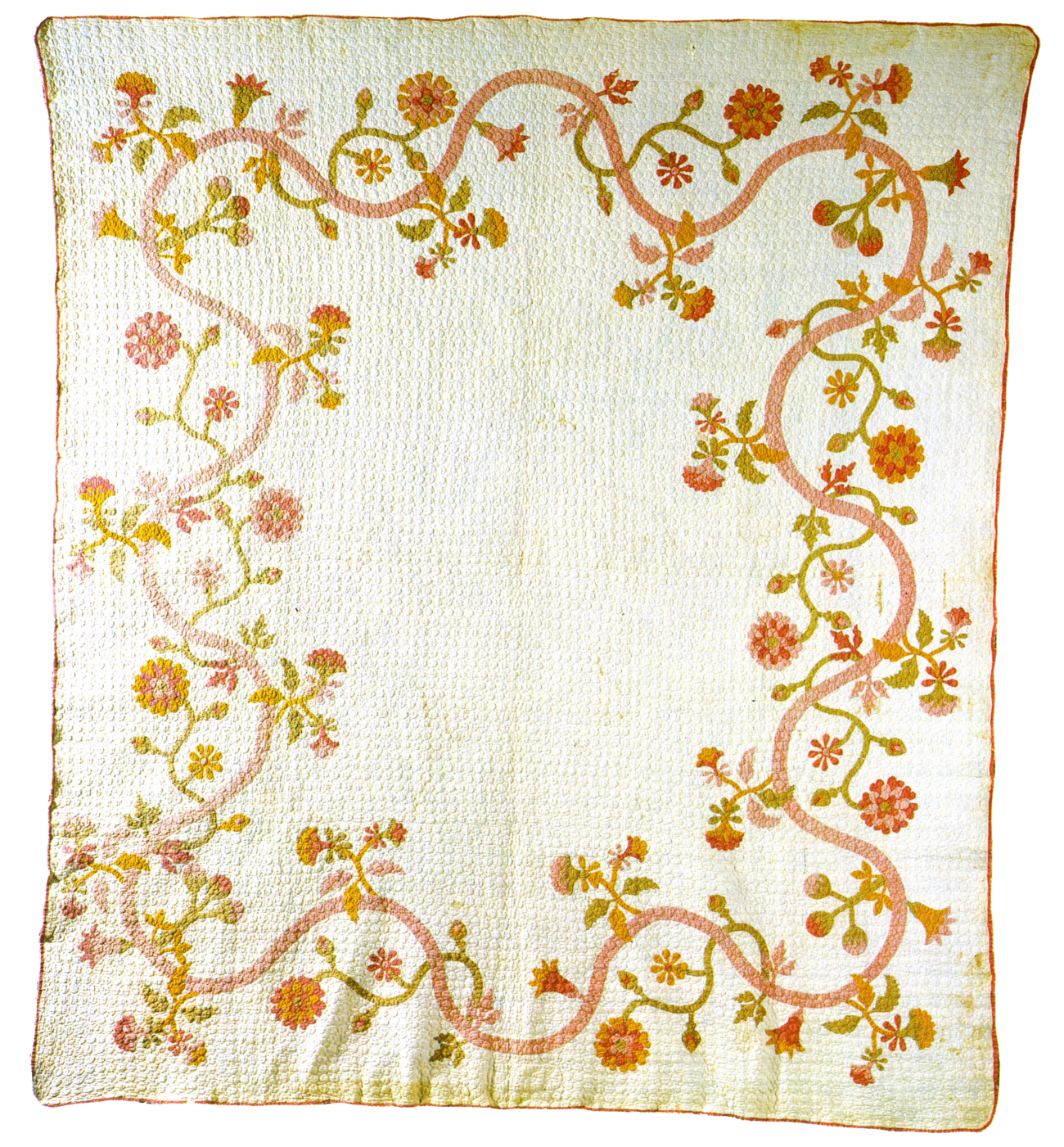 Early-nineteenth-century American quilts hold a particular fascination for many quilt scholars. Whether the quilt is a worn Southern linsey or a flawless chintz appliqué out of New England, the attraction might be that it represents a time when the American quilt began to come into its own. In the decades leading up to the nineteenth century, textiles produced on an industrial scale began flooding the country, which made fabric suitable for quilts both affordable and accessible to many American quiltmakers who began enthusiastically experimenting with materials and methods. Quilt by quilt, early-nineteenth-century women gave shape to a rapidly developing American art form. Whenever this prolific period of quilt history is considered, it is inevitably the textile mill, cotton gin, sewing machine, and rapidly expanding national rail-road system that is given the credit for igniting this profusion of quilts. Equally critical, though rarely addressed, is the system of labor in place at the time which made such technological advances possible.