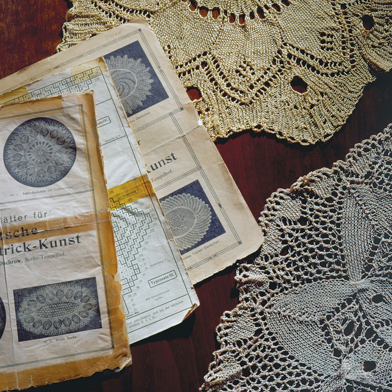 Christine Duchrow’s leaflets with doilies knitted from patterns in leaflet 73 and 87 by Analise Schad, who introduced the author to Christine Duchrow’s designs. Leaflets and doilies courtesy of Charlene Tompkins Schurch. Photo by Joe Coca