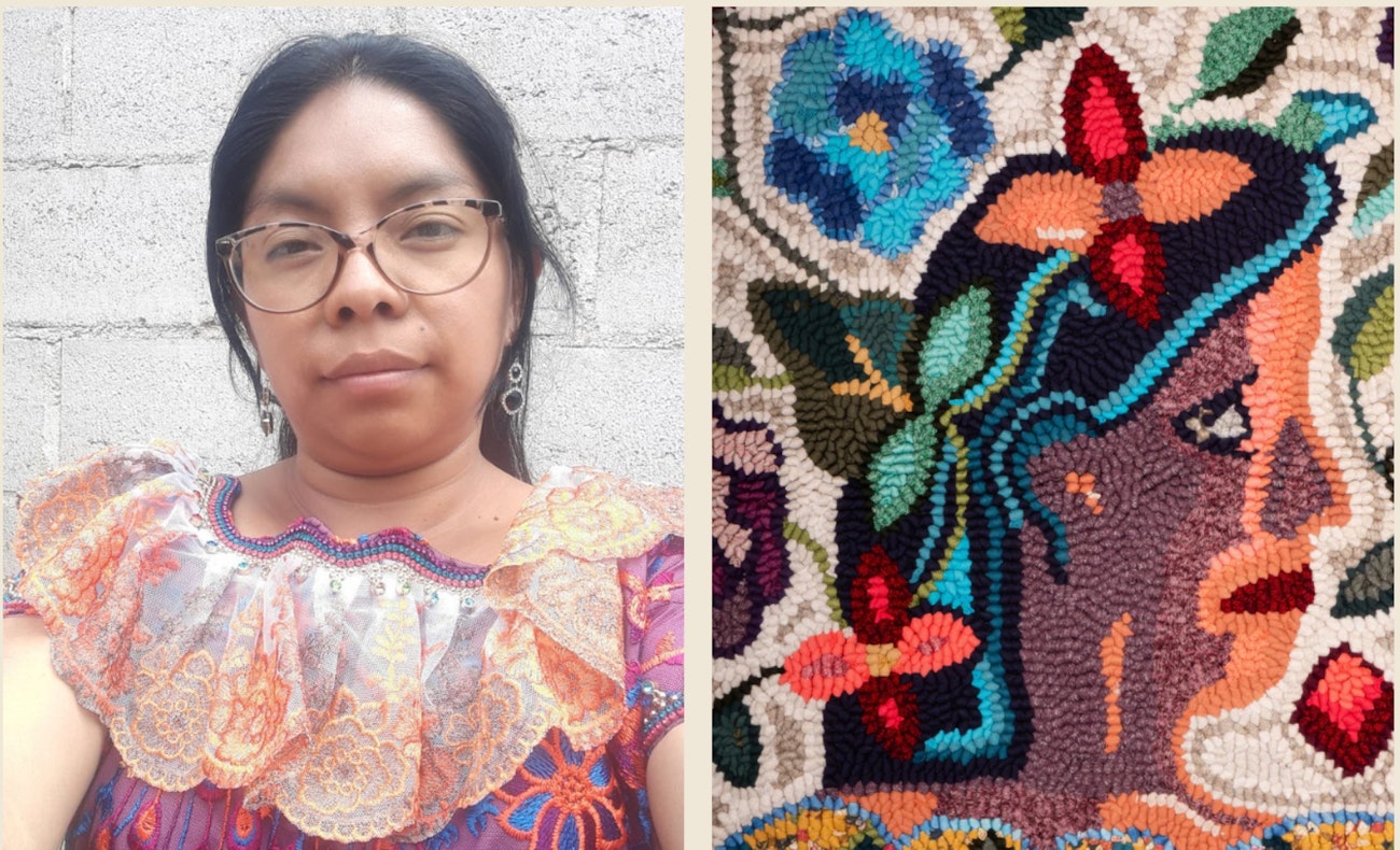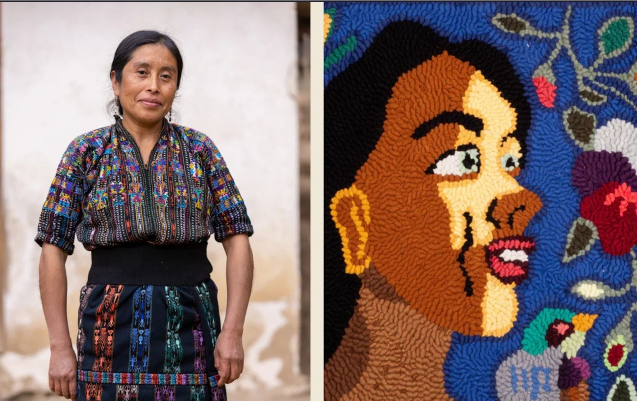 “A New Life,” the self-portrait of Julia Mercedes Vicente Yac, tells a story of a life transformed: “The colors in the rug I hold are not just decoration; they are symbols of how I feel now. They speak of joy, of peace, and of a heart that has come through difficulty with greater clarity and gratitude. Each thread holds part of my healing, part of my hope.”