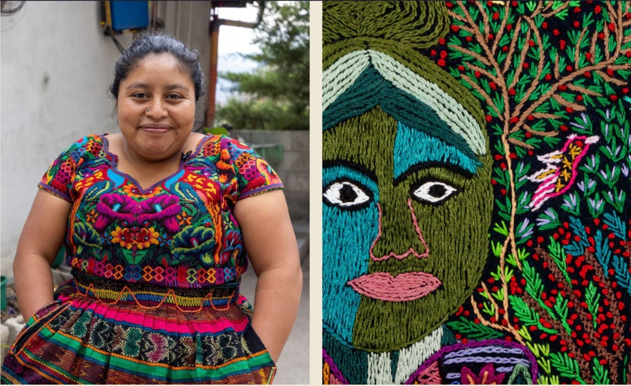 Marta Sulema Elizabet Socón Sacuj de Solís names her piece “Joy, Peace, and Tranquility” and draws on her traditional clothing as a source of identity: "Every thread, every design speaks to who I am: my joy, creativity, strength, and vitality.”