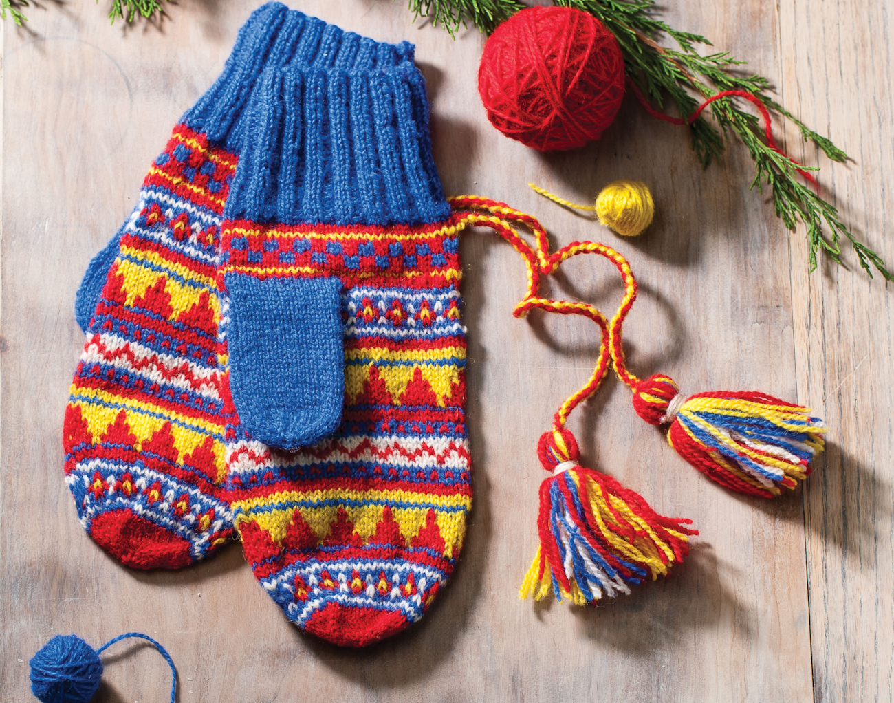 Karesuando Mittens based on a pair of Sami mittens designer Laura Ricketts saw in Lulea, Sweden. Knit these glorious mittens for a special someone. Their cheer and warmth will convey your affection. Get the pattern free!