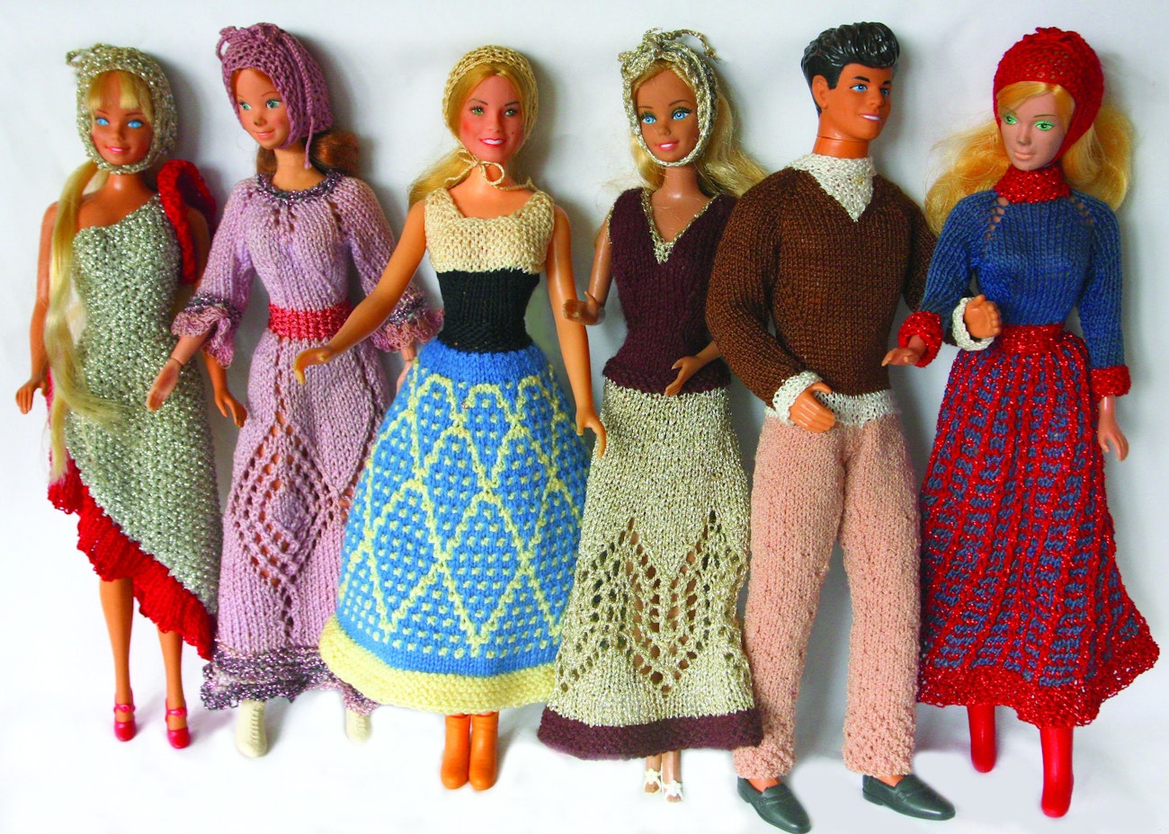 Barbara G. Walker designed and knitted all of the tiny-gauge garments on these dolls. Photo courtesy of Meg Swansen