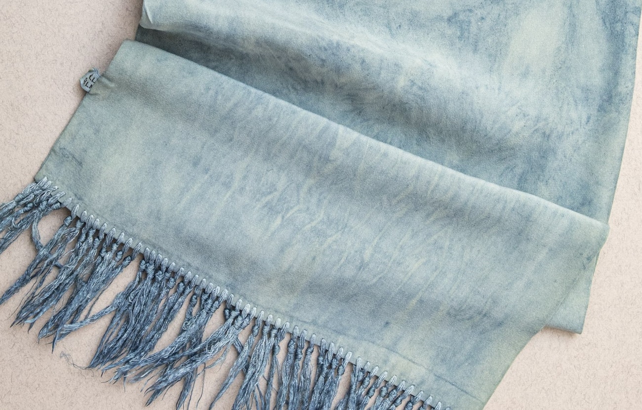 Shibori silk scarf dyed by Holly Dumont. PieceWork, Summer 2026. Photo by Matt Graves