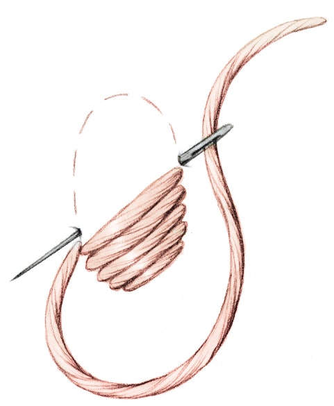Transfer pattern to fabric by placing transfer paper between fabric and design and tracing over the design with a dull pencil. Mount the fabric in embroidery hoop. Embroider, using stitches and number of plies indicated in the Stitch Guide.