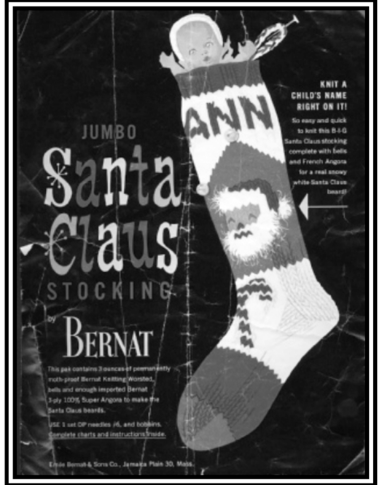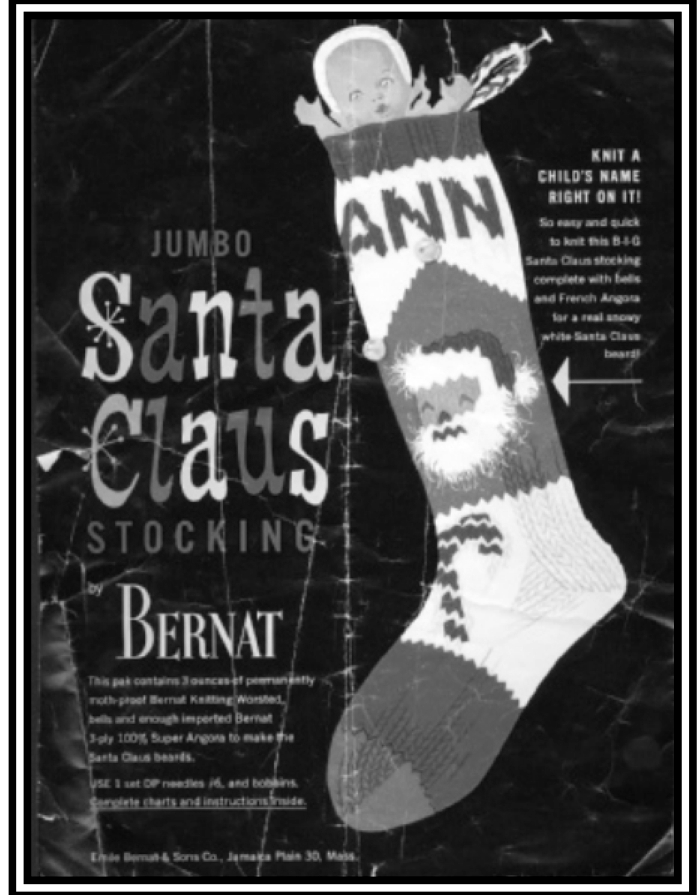A while back, I wrote a little web post about these stockings—just sharing the story—and out of the blue, a reader reached out to say, “I have that pattern! I’ll send it to you.” And she did: “Jumbo Santa Claus Stocking” pattern by Bernat. That’s the magic of needleworkers, isn’t it? We connect over shared patterns and histories and help each other out in unexpected ways.
