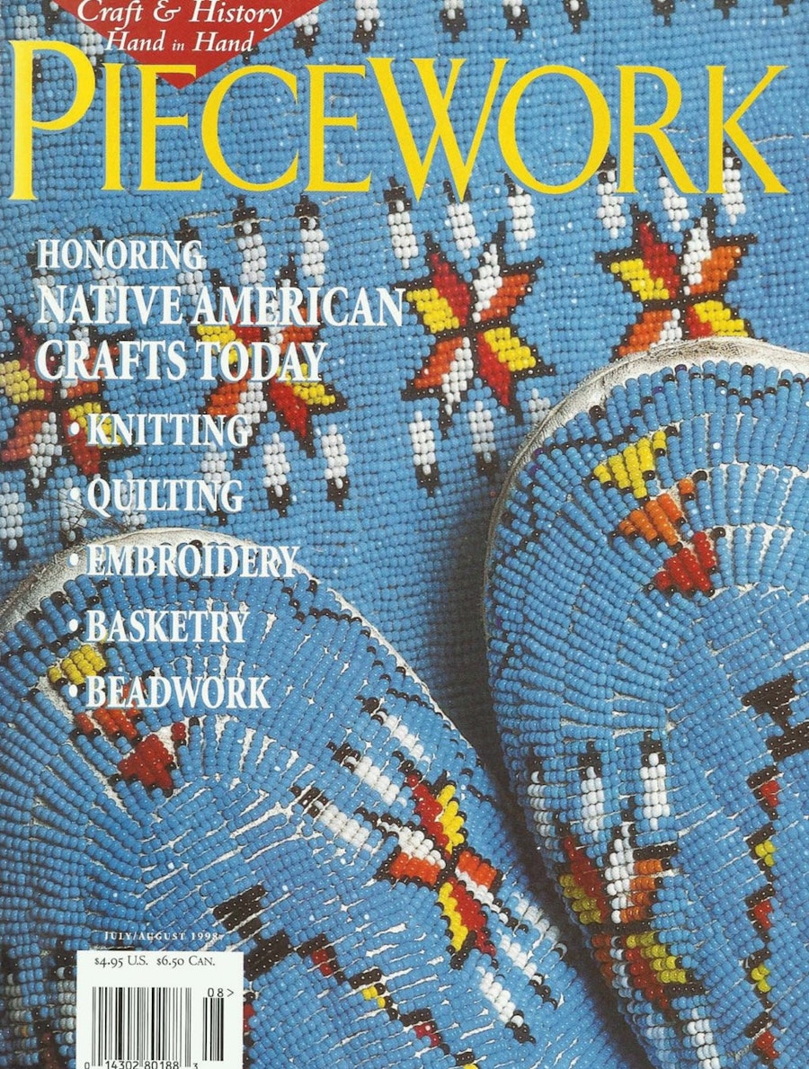 Meet the beadworkers of the southern plains. Learn some of the techniques used by Southern Plains Indians in their beadwork. Meet Lakota quillworker Alice New Holy Blue Legs and admire her work. Learn three traditional methods of working decorative porcupine quills onto surfaces. See the baskets made by the Neptune family, several generations of whom have made beautiful Passamaquoddy baskets out of ash-splint and sweet-grass. Enjoy the bold motifs of the Cowichan sweaters of the Coast Salish people. Learn some basic knitting techniques used in a typical Cowichan pullover sweater. Admire the moose-hair embroidery of the Huron. See a beautiful traveling exhibit of Native American quilting.