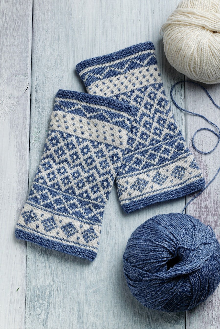 LoginThe blue-and-white-patterned sweaters from Vörå Finland, that Carol examined at the Myrbergsgården Museum inspired the stitch pattern in these lovely arm warmers.