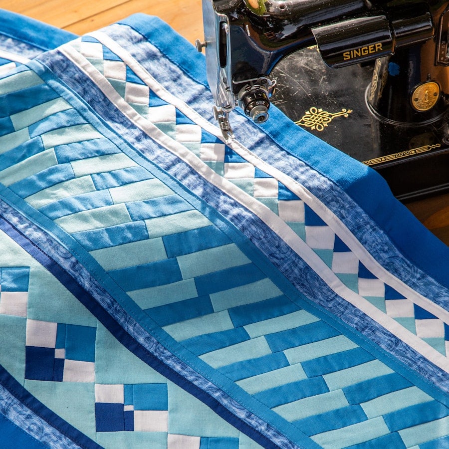 LoginThis table runner measures 16" × 36" (40.6 × 91.4 cm), with each decorative strip finishing 34" long. When trimming the pieced strips for joining, be sure to leave ¼" seam allowances on each piece. The fabric is 100% cotton broadcloth.