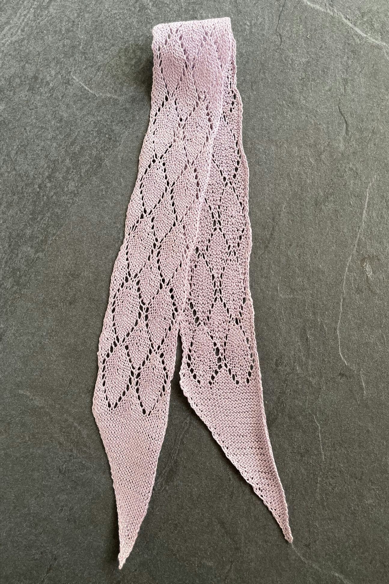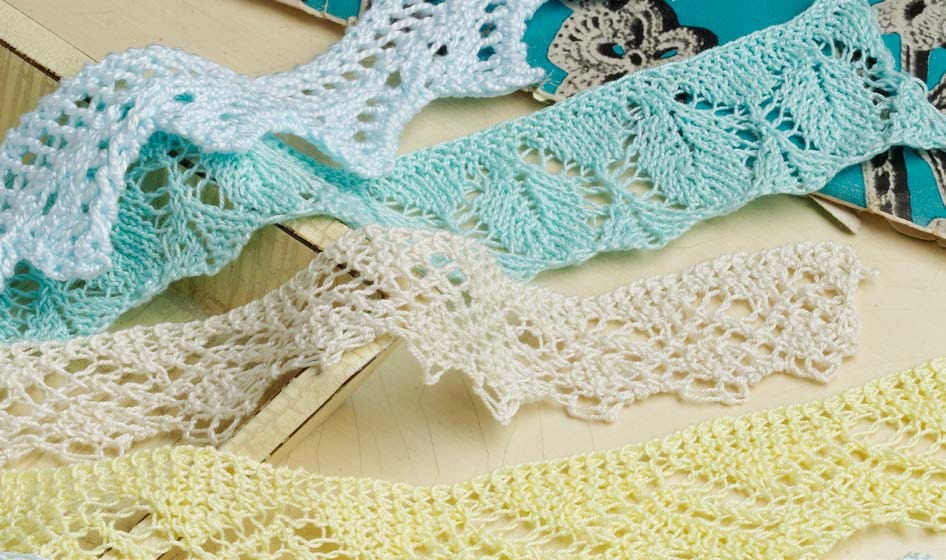The lacy headband pattern is based on the knitted vintage lace edging sample second from the top.