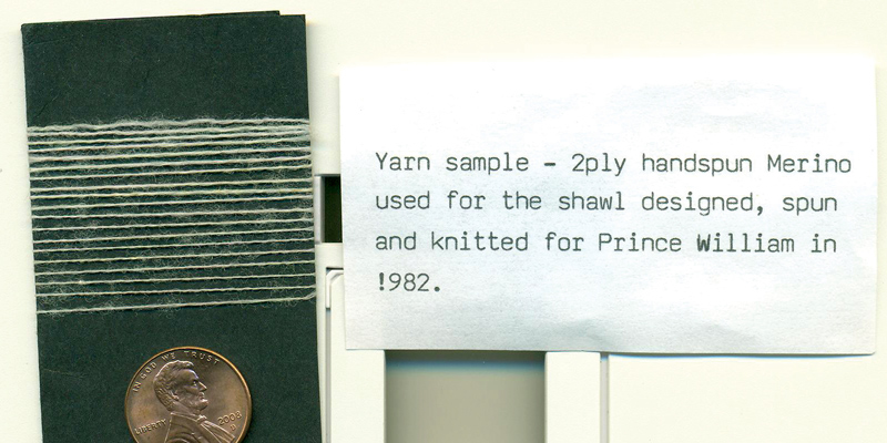 “The final phase of this exciting project was receiving copies of the letters sent to the High Country Sheep Breeders thanking them for the shawl. There was a letter from the secretary of the Prince of Wales and also a letter from the Princess of Wales. Later when they traveled to New Zealand the following year with Prince William, I received a letter from Lady Beatty, the wife of the governor general at the time, telling me that Prince William had been wrapped in the shawl when he was carried from the plane to Government House. I was pleased that the project had come full circle when it was used in New Zealand by the intended recipient.”