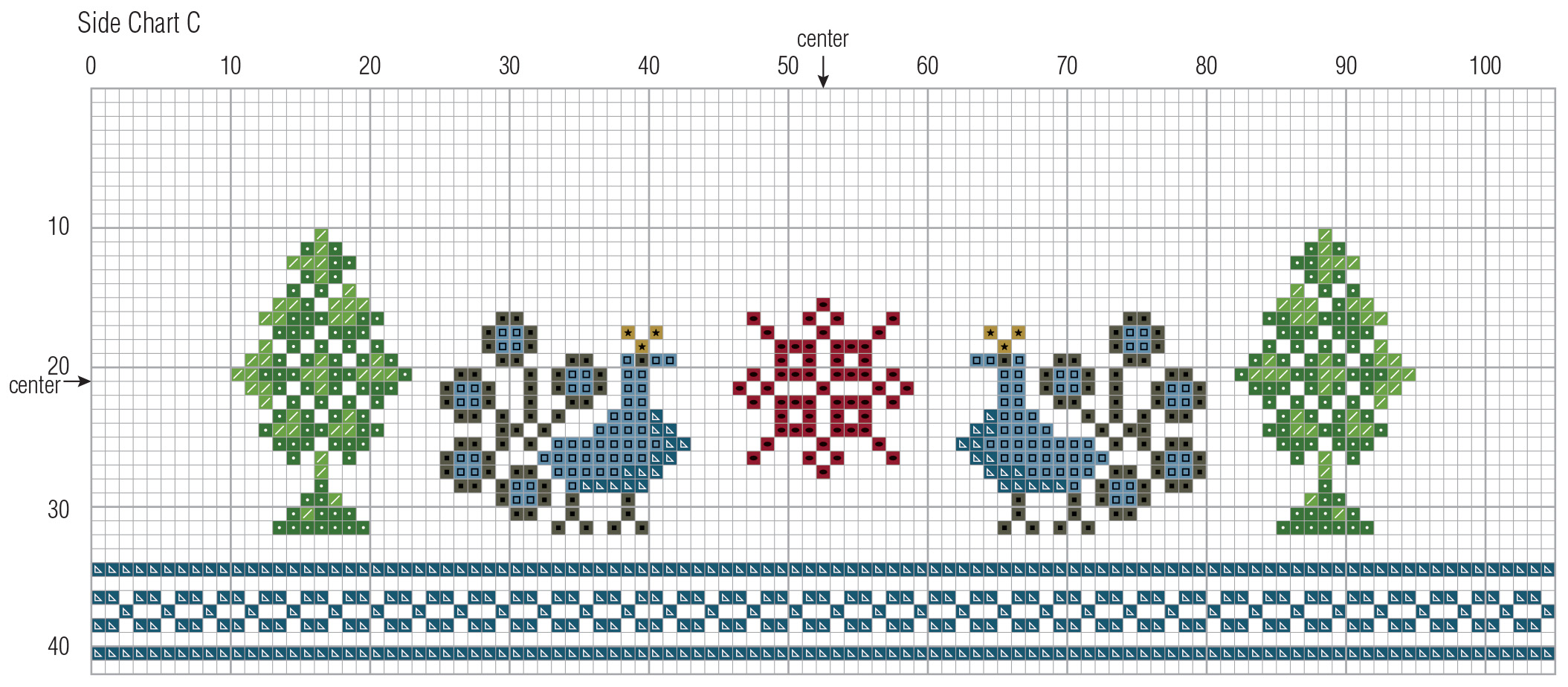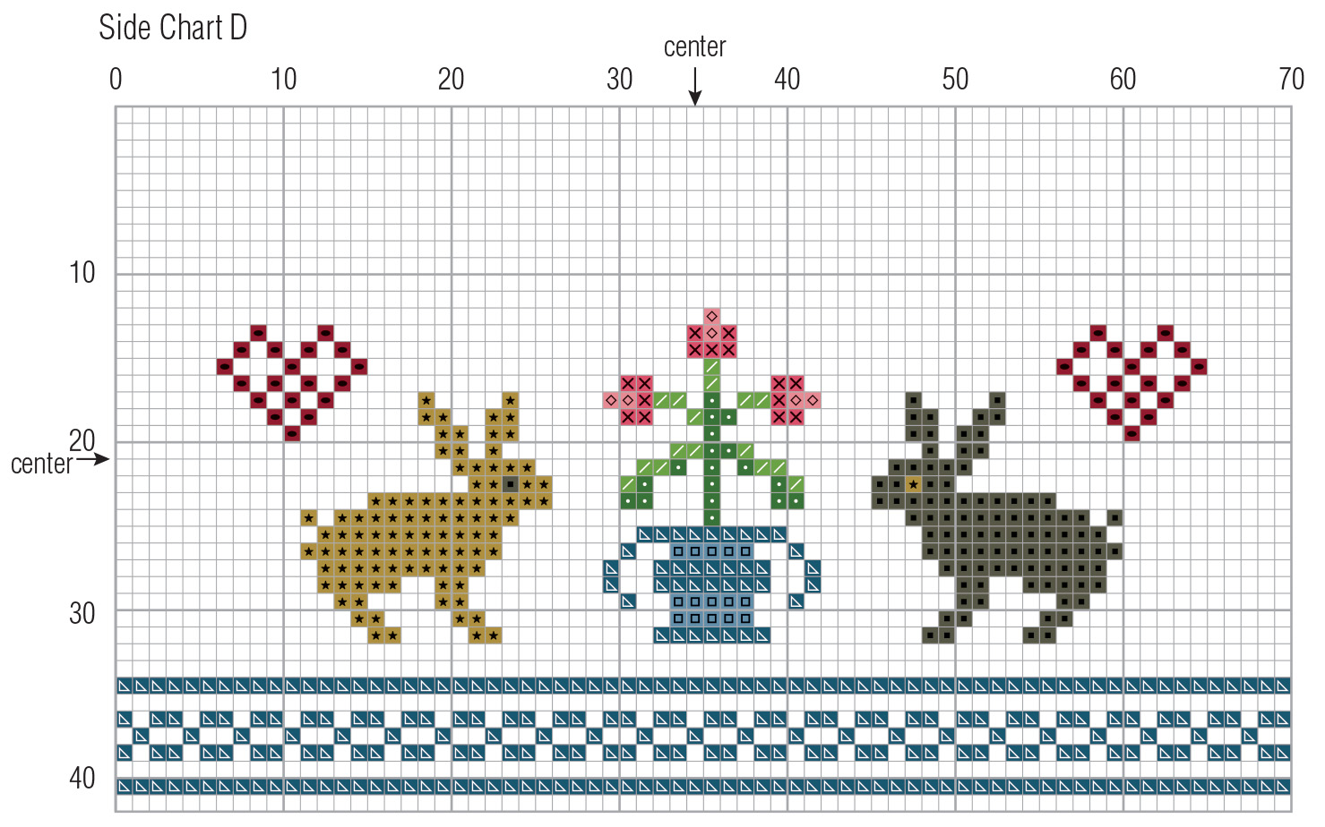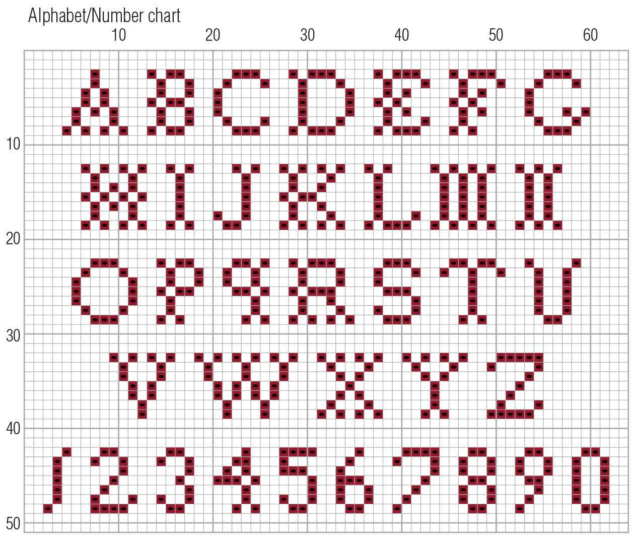 All the companion charts to cross-stitch the Whitman’s Sampler-inspired keepsake box by Elisabeth Jenkins Baty.