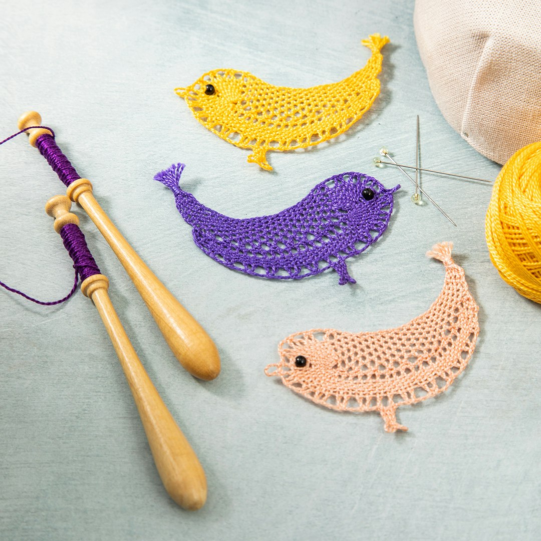 Learn a new skill with these bobbin lace birds from Karen H. Thompson.
