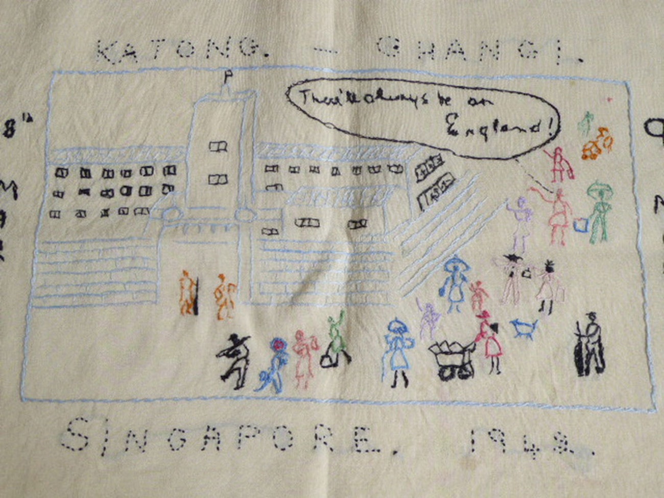 Five hundred women were POWs in Changi prison on the outskirts of Singapore. Their embroideries were a subterfuge to stay in touch with their menfolk in a neighboring camp. Photo courtesy of the Imperial War Museum