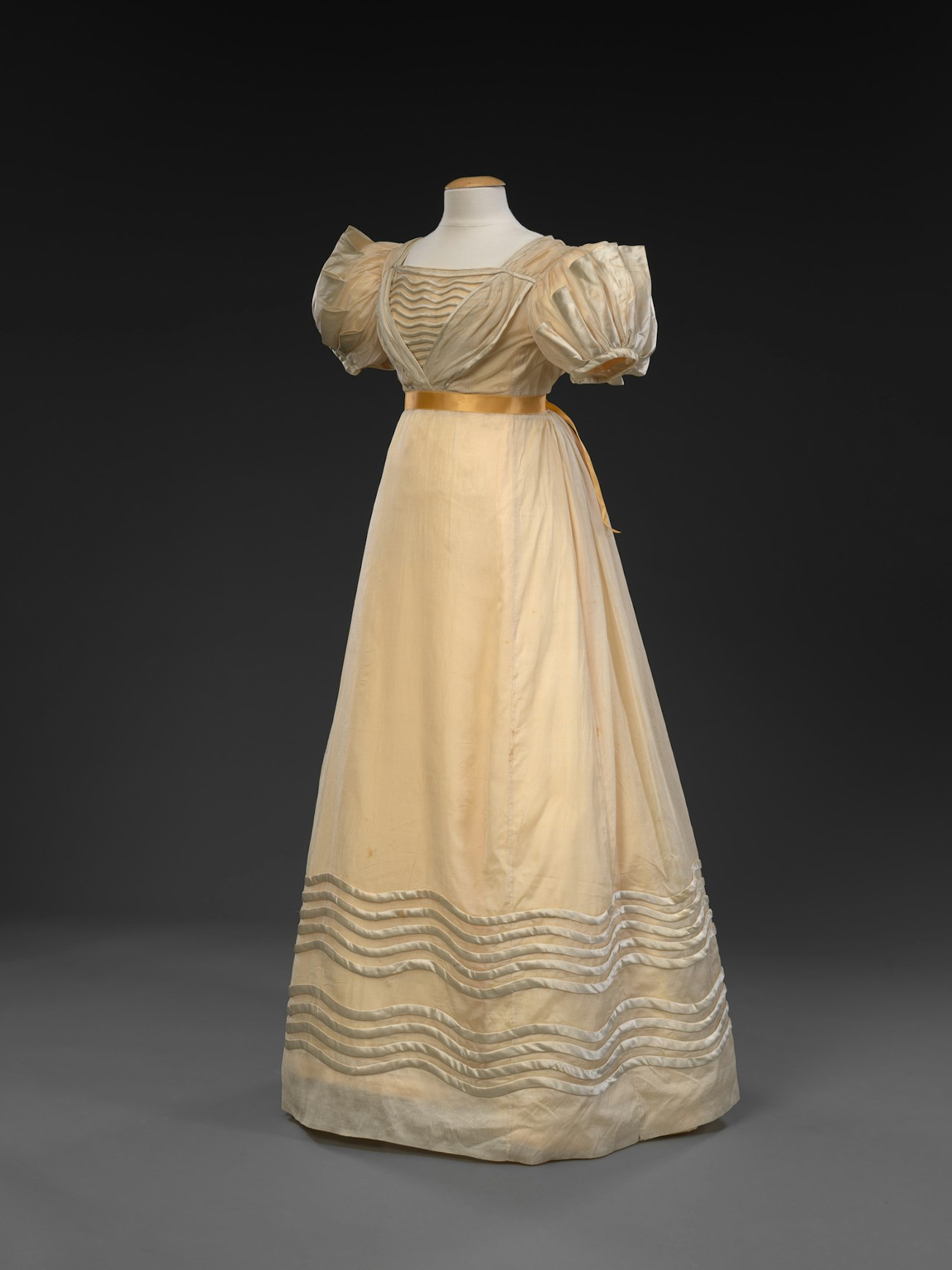 Silk-gauze and silk-satin dress with cotton wadding, 1821–23. The Daughters of the American Revolution Museum 2017.16, gift of Louisa Eifrig Rauth