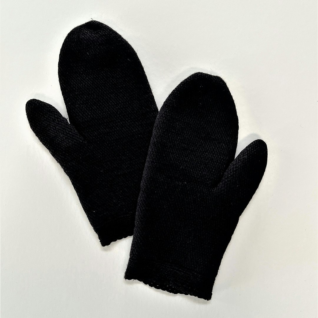 - Attach yarn to the thumb opening, and work even (in the front loop) to joint. Then, decrease two stitches every round—one centered on inside of thumb next to palm, and one opposite this on the outside. End when work clears tip of thumb and slip stitch closed on the inside of the mitten. Fasten off.