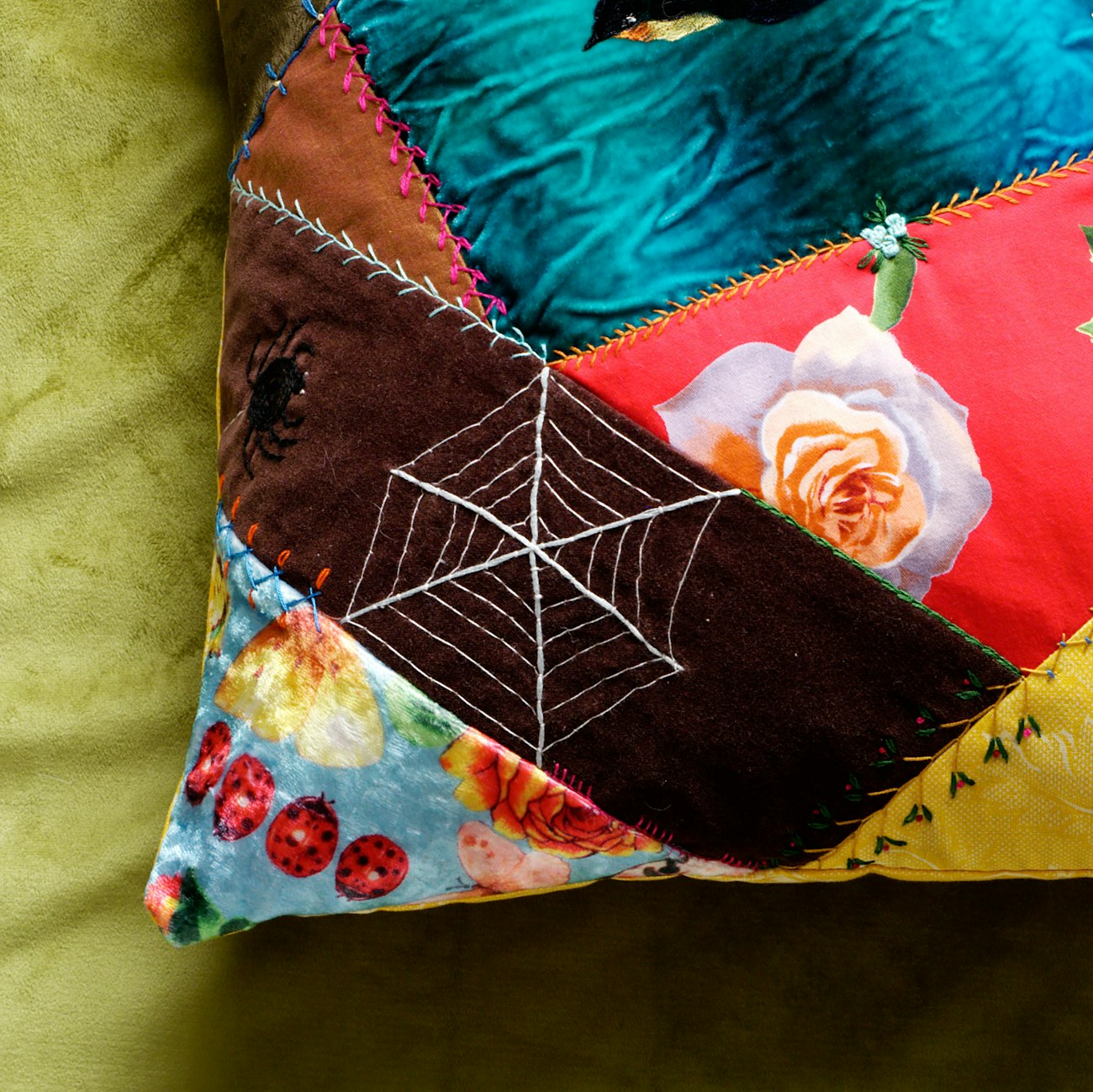 Detail of the spider and web on Linda’s pillow.