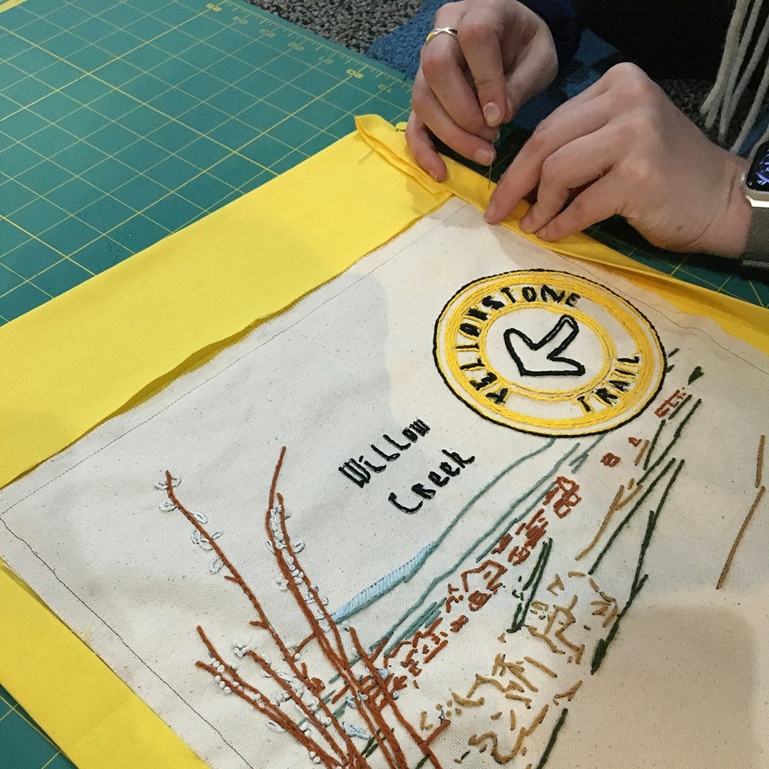 The Gallatin County Tapestry Project has its roots in a trip I took to London with my dad in 2017. I was lucky enough to see the Mount Felix Tapestry, a series of embroidered panels chronicling the history of New Zealand General Hospital 2 in Walton-on-Thames during World War II. I brought a book back with me that shared an image of each panel with information about the history and those who had embroidered it, at the time thinking this could be a great idea to implement in my own community. Then came the COVID-19 pandemic, and I realized that this project had been waiting for a moment such as this to uplift people in the community through working together while we had to stay apart.