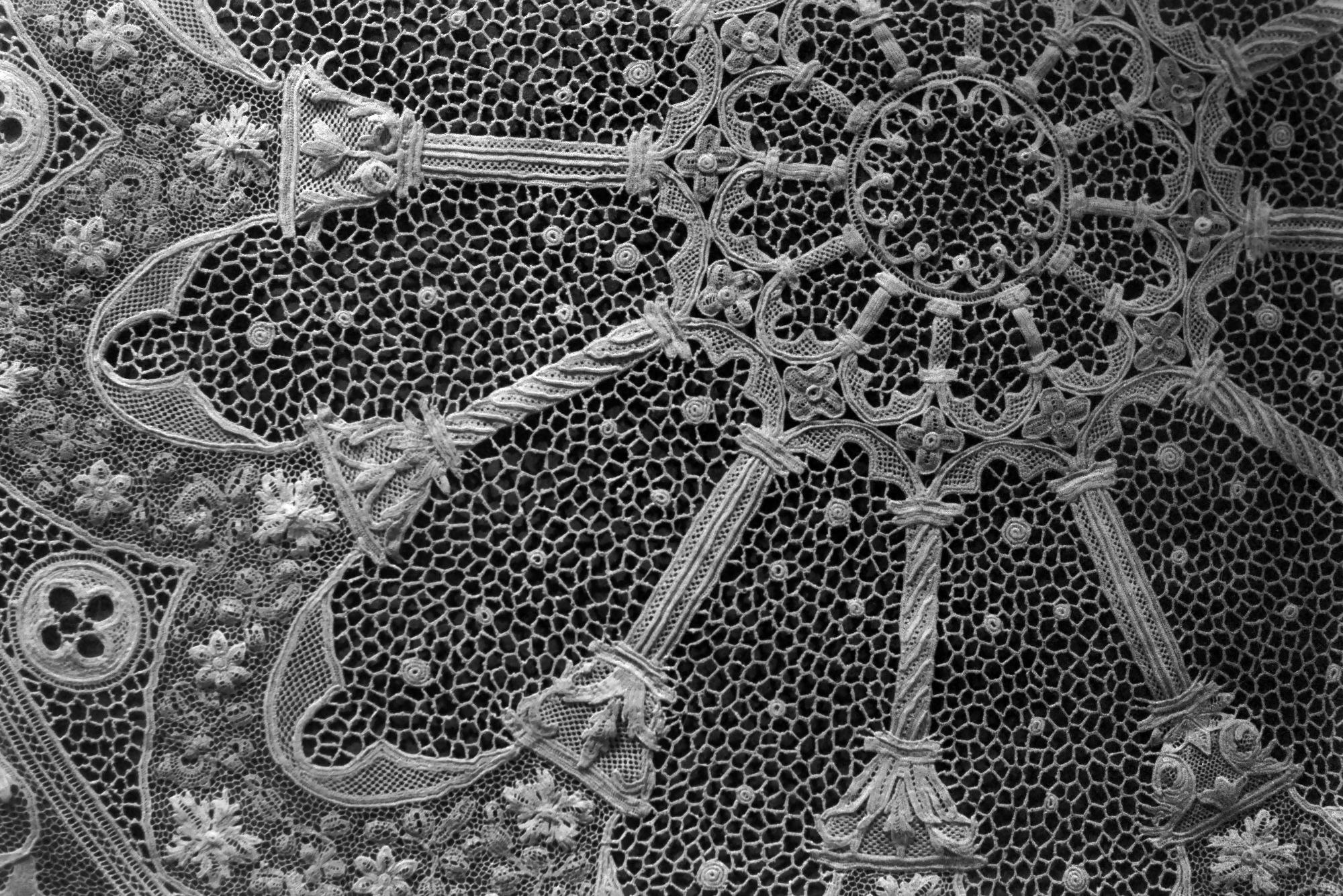 Merletto di Orvieto came into its own and distinguished itself from the Irish lace technique when artisans began to use motifs inspired by their duomo’s magnificent facade. Eventually, about 300 households in the municipality of Orvieto made their living from the local lacemaking trade—which also included thread spinners and ironers, who were responsible for enhancing three-dimensional effects. Ars Wetana continued to support the community until, sadly, it closed in the 1970s. The women who continue to practice Merletto di Orvieto are dedicated to preserving local crafts and are petitioning UNESCO to obtain the recognition of Orvieto lacemaking as an Intangible Cultural Heritage.
