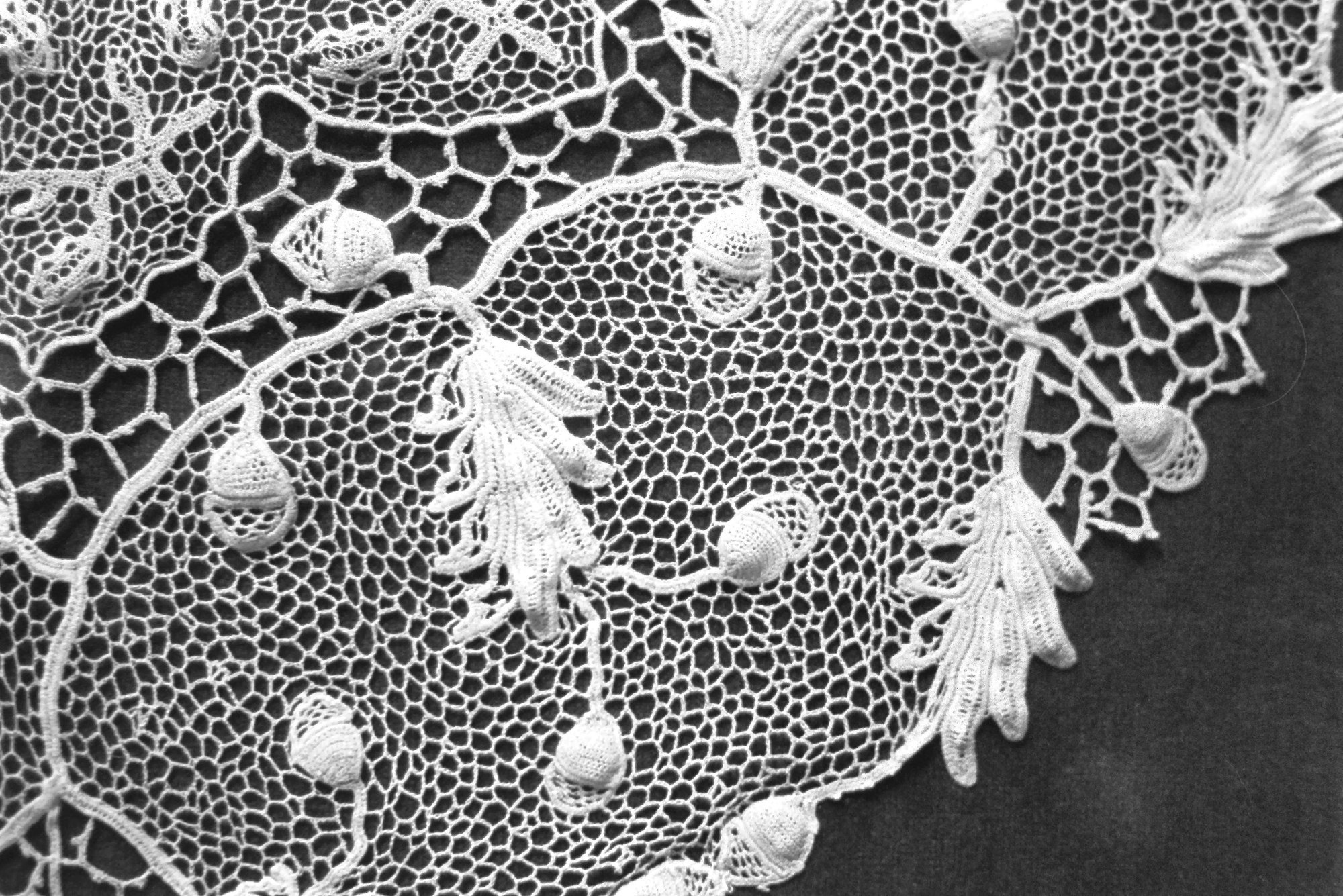 Orvieto’s lacemaking cottage industry got its start in 1907, when the Noble Faina family organized a cooperative workshop named Ars Wetana, which translates to Ancient Arts. The region was struggling economically at that time, and many women became unwitting heads of households after wars or crop failures. The Ars Wetana workshop trained these women in lace techniques inspired by Irish crochet lace. Each household specialized in making different crocheted elements and specific motifs that would later be joined together via a handmade base of netting. Lacemakers combined each element to create ethereal masterpieces. Once the pieces were finished, Count Faina collected and transported them to Rome, where they were sold in the thriving tourist and export markets.