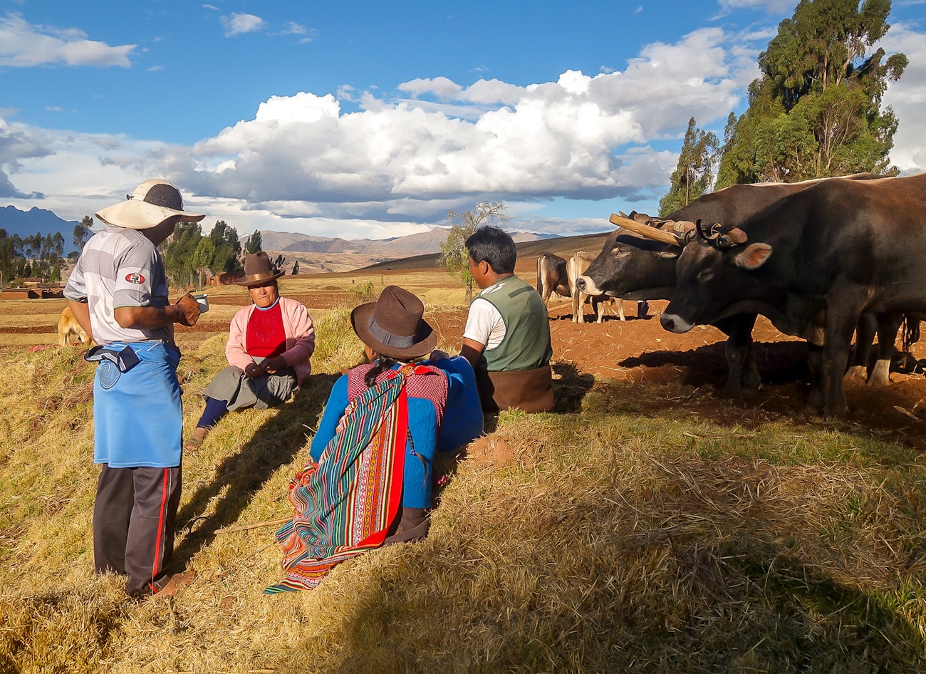 Boys interview an elder in Mahuaypampa, a heavily agricultural village.
