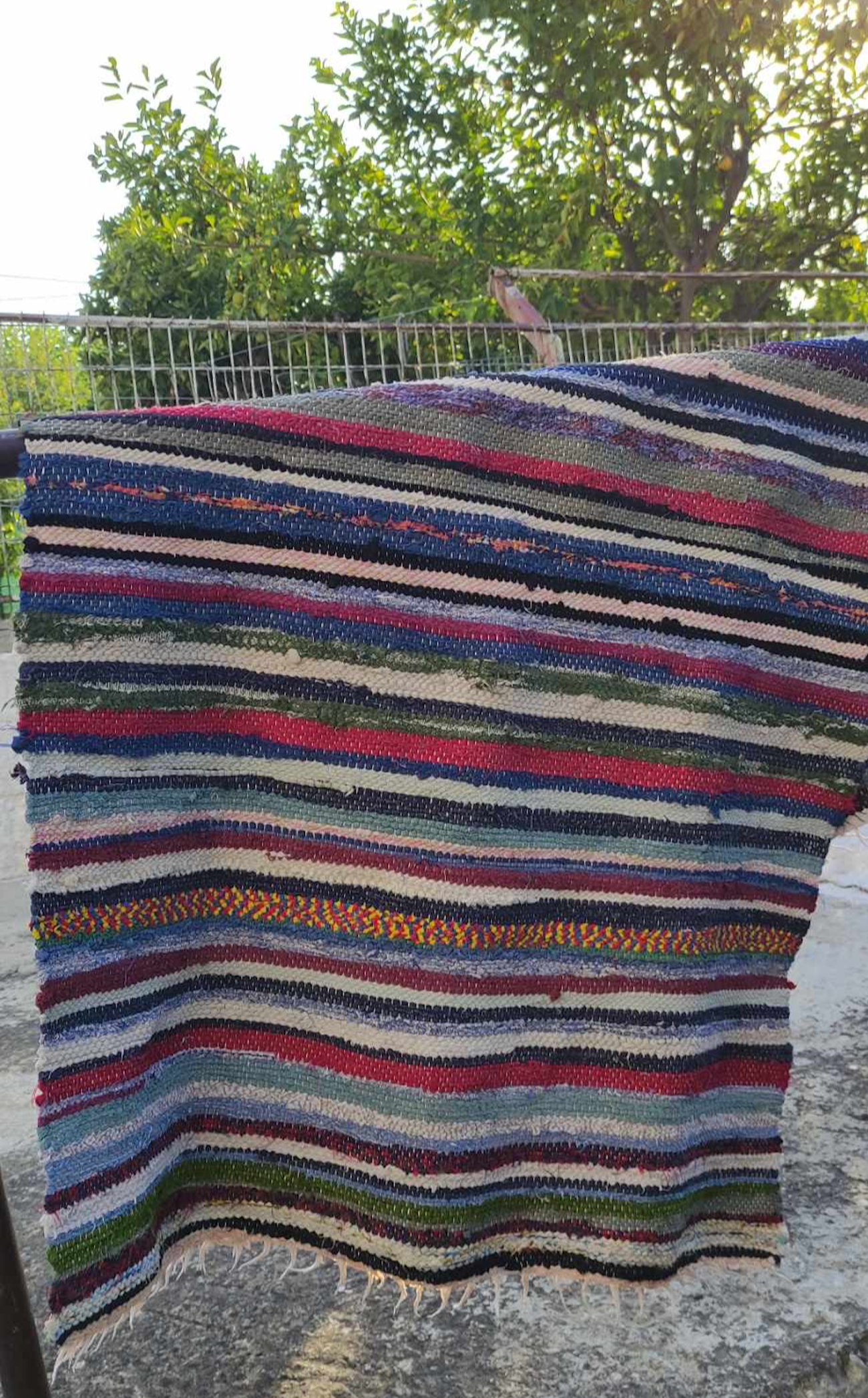 One of the author's Koureloudes, a rag rug, made from repurposed fabric. Photo by the author