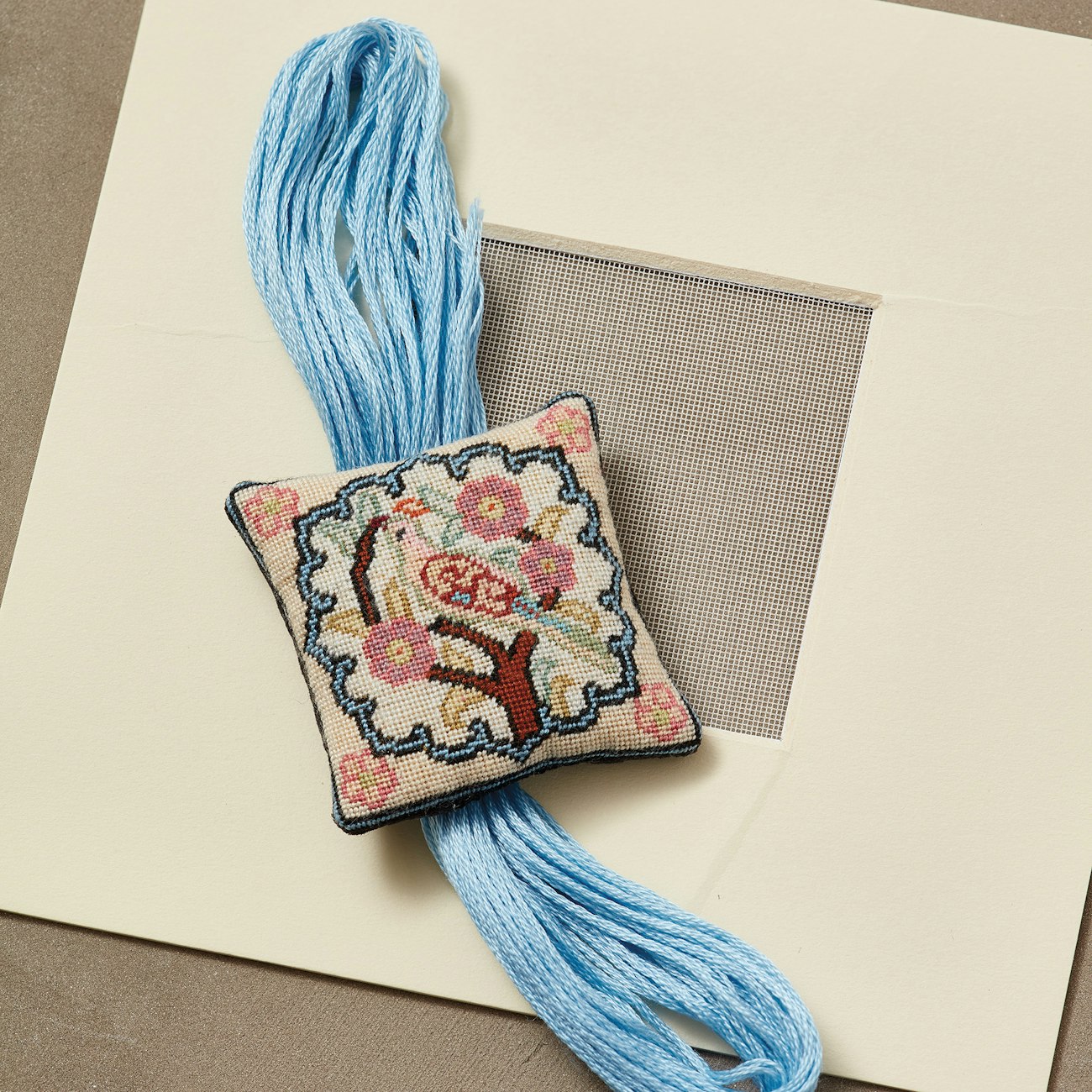 The Tree-of-Life design is versatile—motifs from this pattern can be used to create cushions, seat covers, bookmarks, pincushions, bell pulls, and more, ranging from medium to tiny sizes depending on the thread count of the ground fabric or canvas used. For this project, I chose forty-eight-count silk gauze and cotton embroidery floss.