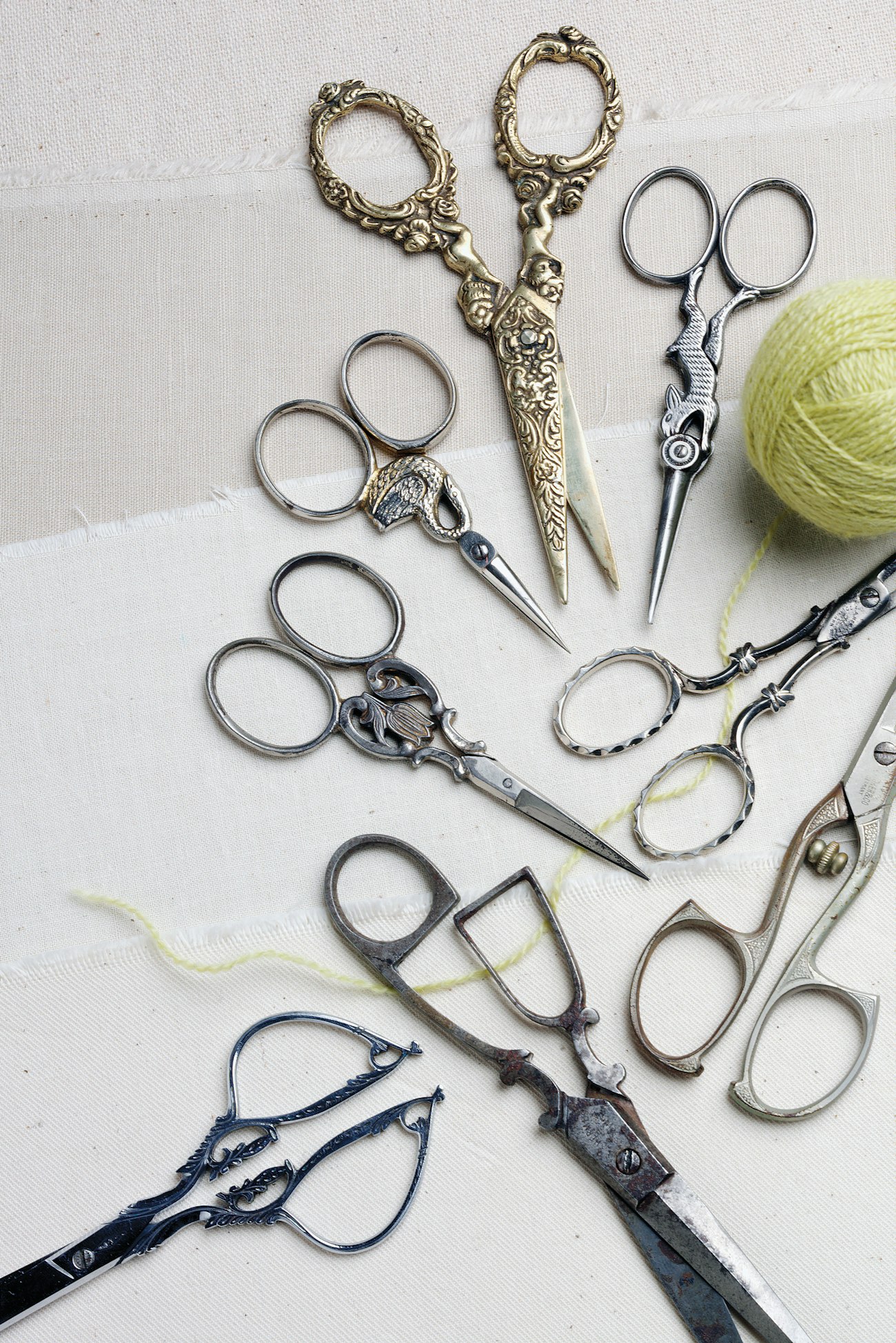 Among the tools in the collection, which date from the 1700s to 2005, are weaver’s shears, industrial scissors, tailor’s scissors, sheep shears, dressmaking scissors, calligraphy scissors, leather cutters, buttonholers, medical scissors, flower snips, office/desk scissors, hair-cutting scissors, teacher’s scissors, pinking shears, candlewick trimmers and snuffers, table grape shears, champagne bottle wire cutters, soft-boiled egg cutters, kitchen scissors, embroidery scissors, nippers, sew-basket scissors, betel nut cutters, pocket scissors, and manicure scissors.