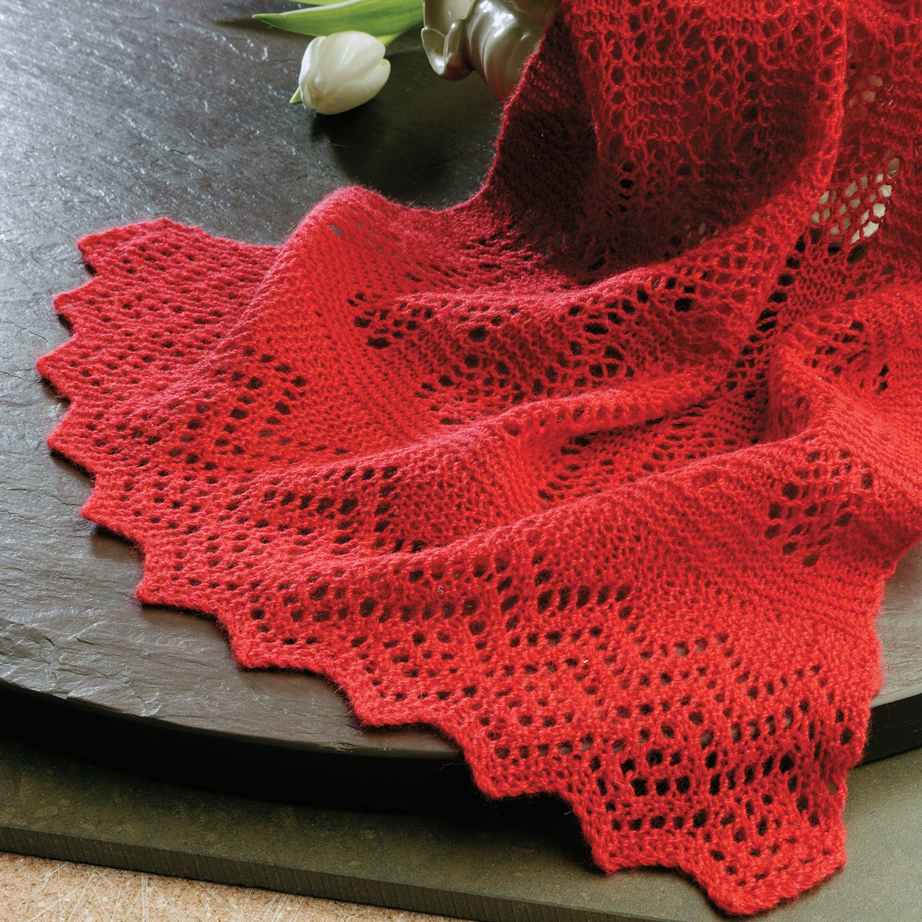 The Accordion Scarf by Galina A. Khmeleva is based on traditional Orenburg lace patterning, featuring a romantic lacy edge juxtaposed against a simple, relaxing-to-knit geometric repeat. Double the width (and the yarn amount), and you can make an elegant and unfussy shawl that would be suitable for many occasions.